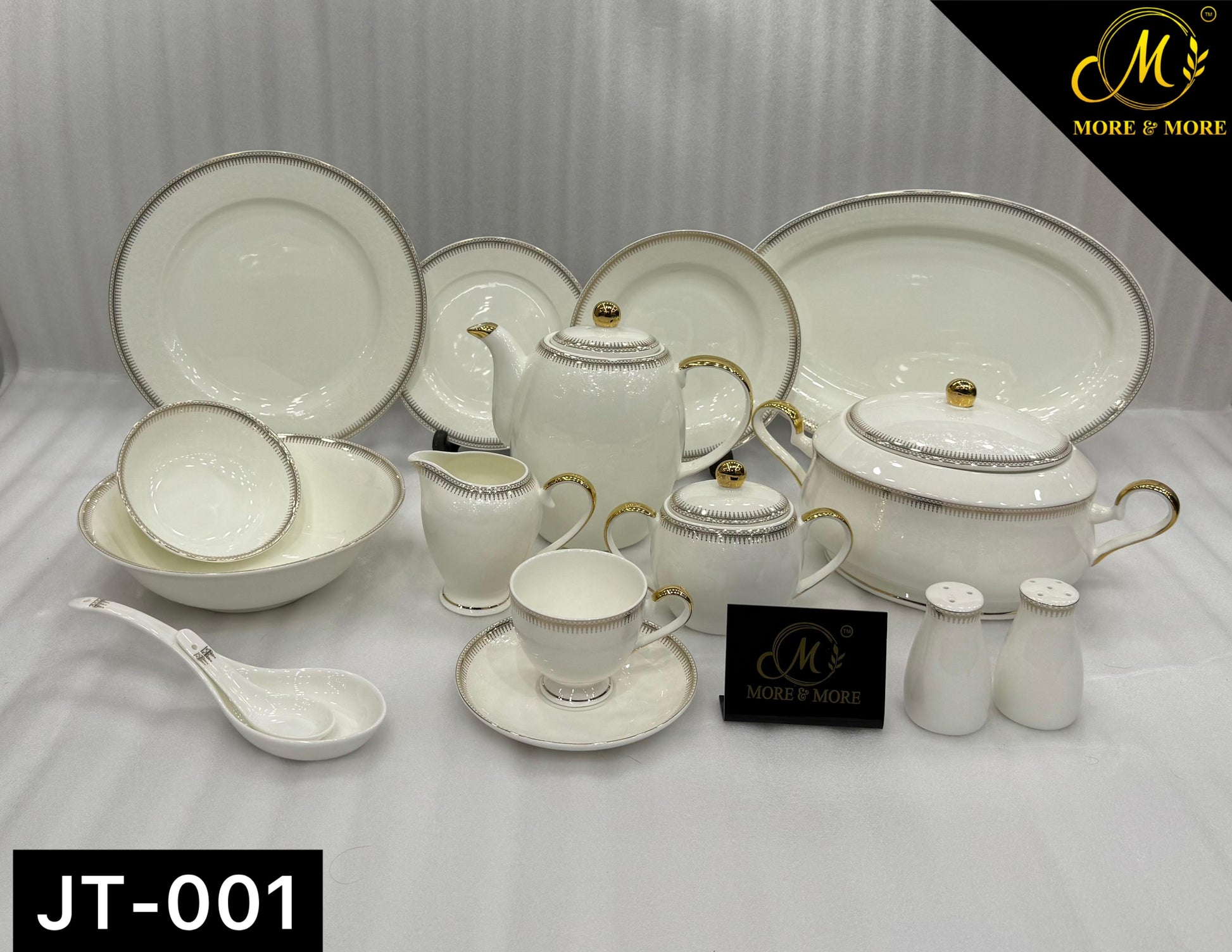 More & More Crockery Gold Embossed Super Bone China Dinner Set – 73 Pcs (8-Person) – Design JT-001