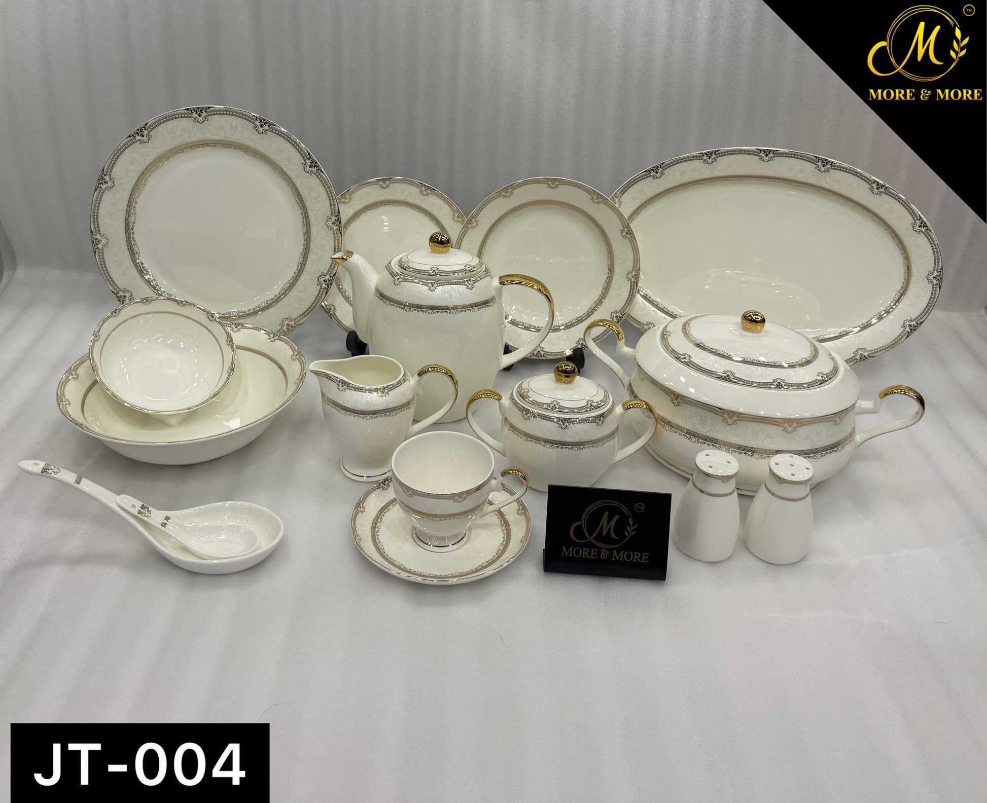 More & More Crockery Luxurious Gold Printed Super Bone China Dinner Set – 73 Pcs (8-Person) – Design JT-004