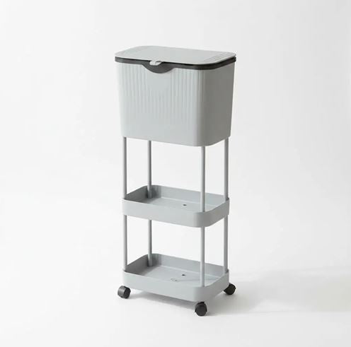 Kitchen Trash Can with Lid, Garbage Bin with Storage Rack, Narrow Waste Basket