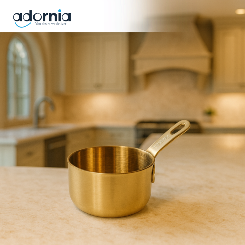 The Korean Golden Sauce Cup is a premium stainless steel mini pot designed for precise sauce preparation and serving. Its compact size and sturdy handle provide excellent control and ease of use, while the high-quality stainless steel ensures durability and resistance to corrosion. Ideal for expert use, this sauce cup combines functionality with a refined golden finish, enhancing both kitchen efficiency and presentation.