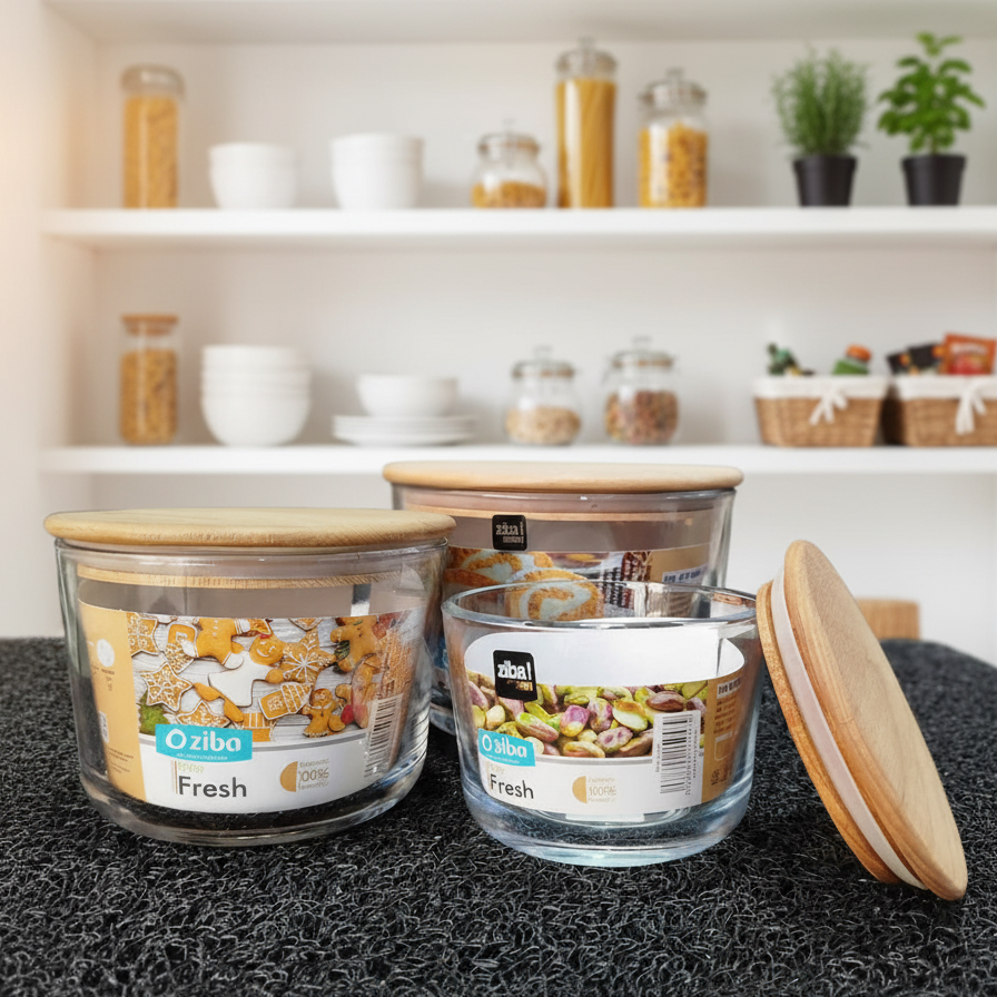 Upgrade your kitchen storage with the LuxeStack Glass Bowl with Wooden Lid by Ziba. Combining elegance and functionality, this premium bowl allows you to store dry goods, snacks, or ingredients while keeping your space organized. The stackable design maximizes storage efficiency, and the crystal-clear glass with a natural wooden lid adds a modern, stylish touch. Perfect for home kitchens, pantries, or offices, LuxeStack brings luxury, practicality, and durability to your storage solutions.