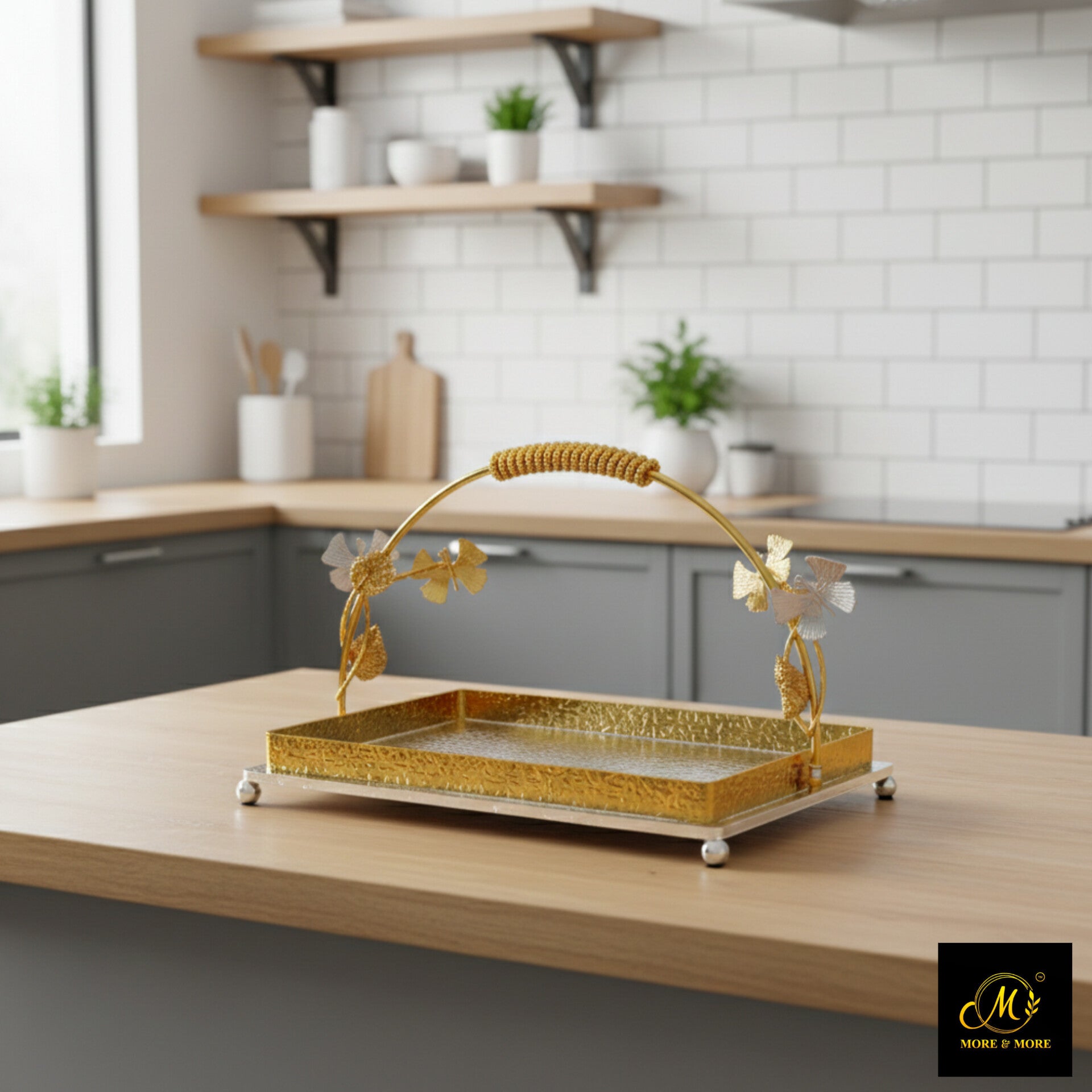 Luxury Golden Silver Platter with Butterfly Handle