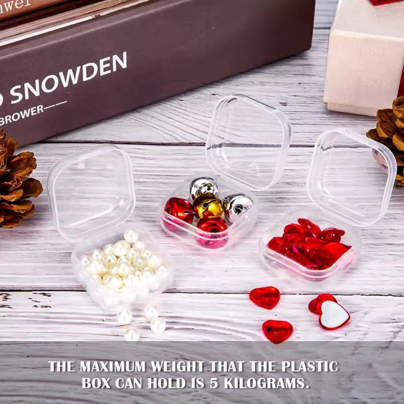 Keep your small valuables safe with this pack of 10 mini transparent storage boxes, designed in a durable square plastic design. Perfect for storing earrings, necklaces, rings, beads, and other tiny accessories, these boxes are lightweight, reusable, and easy to carry. The clear finish makes it simple to identify contents at a glance, while the secure lid keeps items protected. Ideal for jewelry storage, craft supplies, or packaging needs.