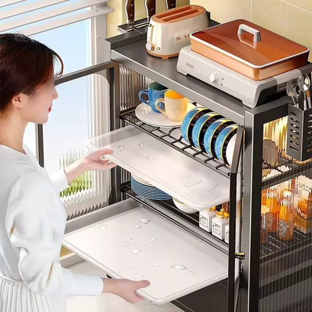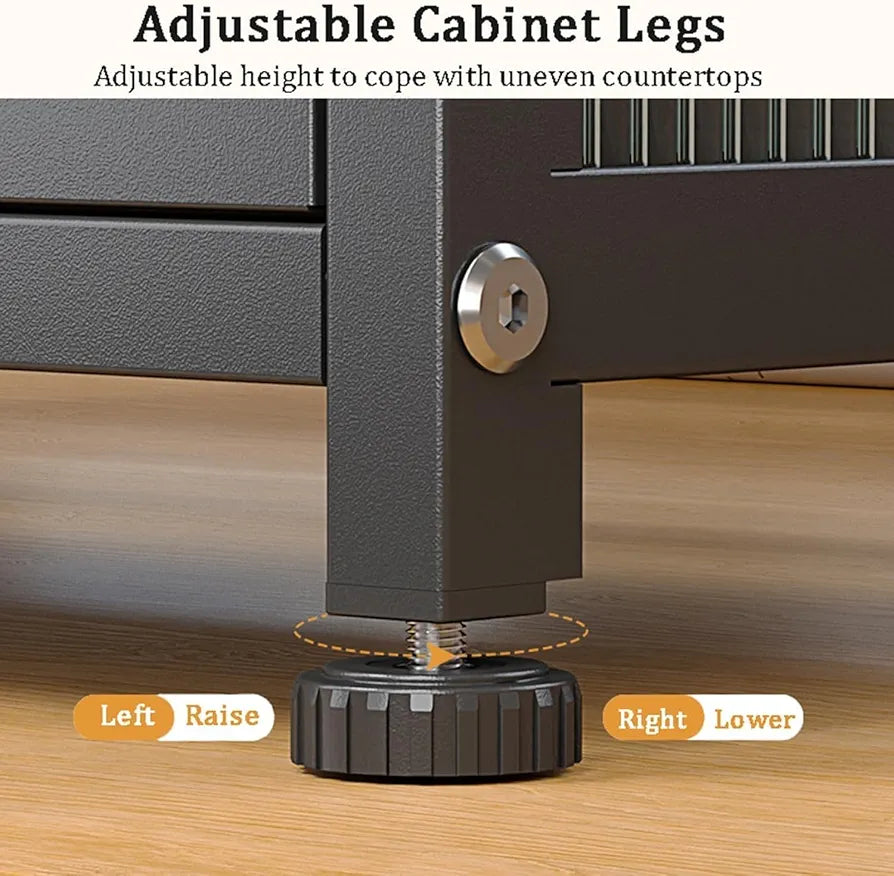 Every detail of this Multipurpose Kitchen Storage Cabinet has been carefully designed to enhance your daily household organization. Its smooth, modern look fits neatly on countertops, adding elegance to your home while solving your storage headaches. Cleaning is a breeze, thanks to its high-temperature and water-resistant materials. Plus, its adjustable design allows for easy customization to meet your needs.