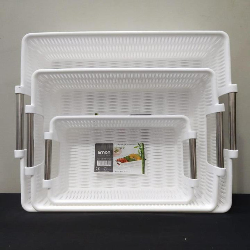Limon Multipurpose Rectangular Bamboo Basket with Steel Handles – Stylish Storage Organizer for Home & Kitchen | Adornia.pk