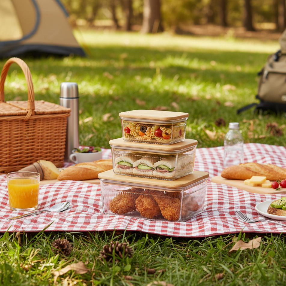 - Materials: High-quality borosilicate glass & natural wooden lids with silicone seal