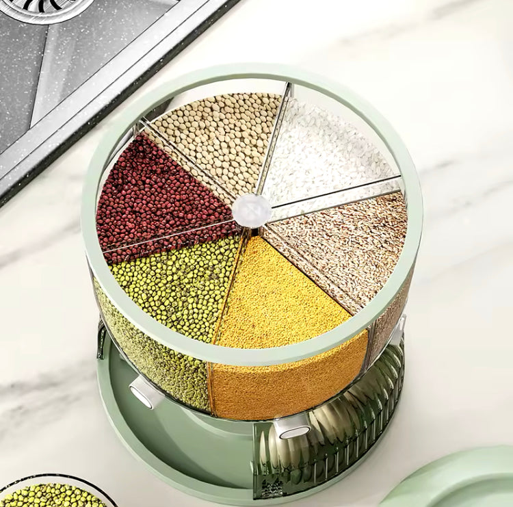 Rotating 6 Grids Cereal Rice Dispenser with Egg Rack