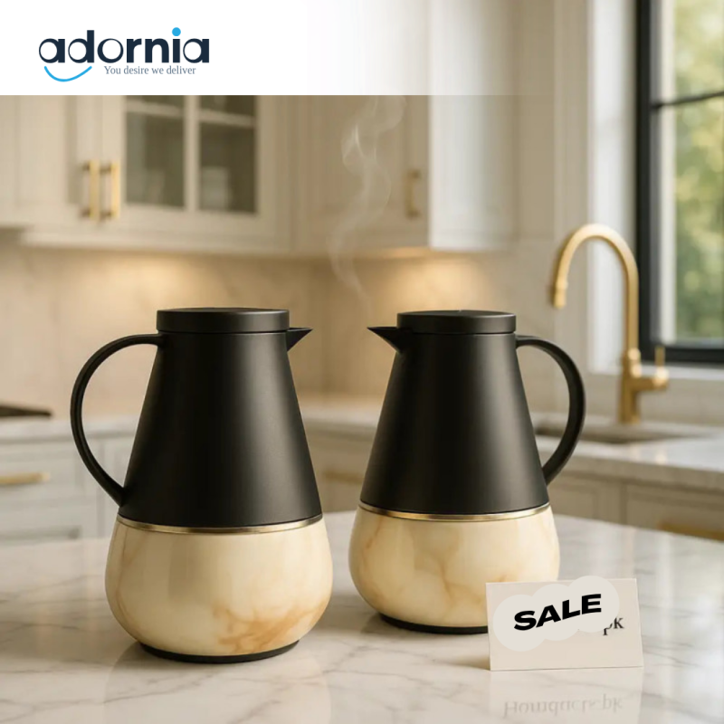 Elevate your beverage experience with the Tesla Marble Insulated Flask (1 Pc) – a luxurious fusion of function and style. Crafted with a matte black top and a marbled cream base, this 1-liter thermos keeps your drinks hot or cold for hours with its high-performance vacuum insulation. Perfect for serving tea, coffee, or infused water, whether at home, in the office, or for guest hosting. Designed to match modern kitchens, its elegant silhouette and sturdy handle make it both a visual and functional upgrade.