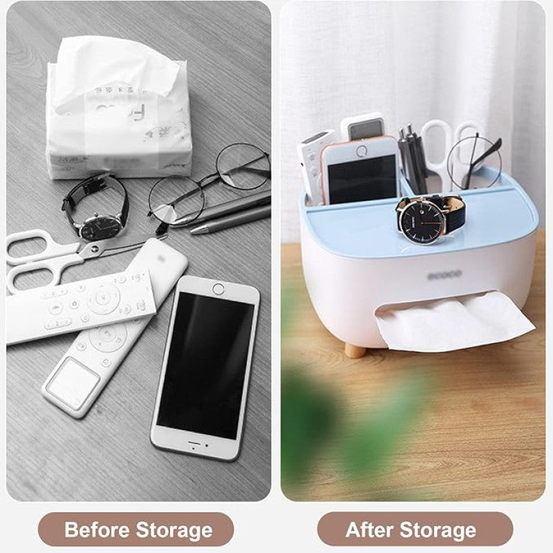 - Tissue box organizer is designed with a cell phone holder, so you can listen to music or watch drama in your leisure time.