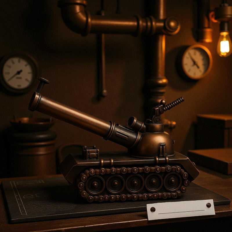 Add a touch of timeless character to your décor with this Vintage Steampunk Miniature Tank, crafted from premium bronze-finished metal. Designed with intricate gears, rivets, and industrial detailing, this 5-inch collectible is perfect for display on desks, shelves, and home décor setups.